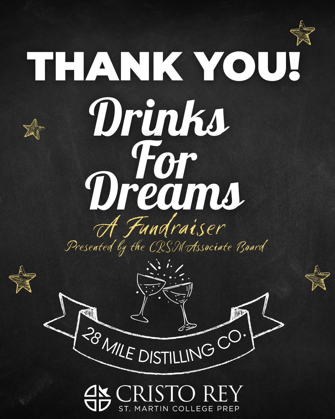 On behalf of the Cristo Rey St. Martin Associate Board, thank you to everyone who joined us in person or in spirit for Drinks For Dreams at 28 Mile Distilling Co.